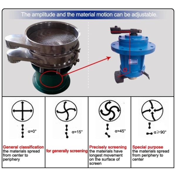 Our circular vibrating screen, as a piece of powdery material screening equipment, uses vertical vibration motor or special vibration exciter as its vibration source. The vibration motor and vibration exciter have an eccentric block at the both upper and lower sides.